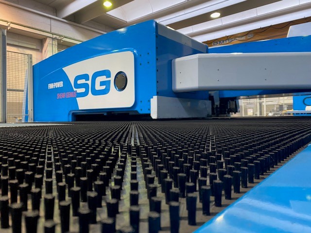 Questo tipo di impianto ci permette di associare alla classica punzonatura , un sistema di cesoiatura integrato , molto efficace per migliorare il metodo comune di separazione dei pezzi di una punzonatrice convenzionale. La macchina è