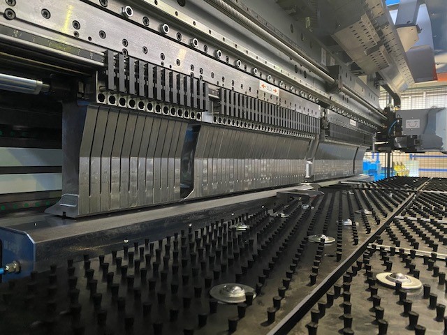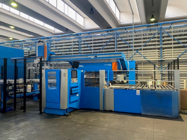 La macchina è dotata di connessione al magazzino automatico , dal quale riceve i materiali semilavorati precedentemente punzonati o laserati.